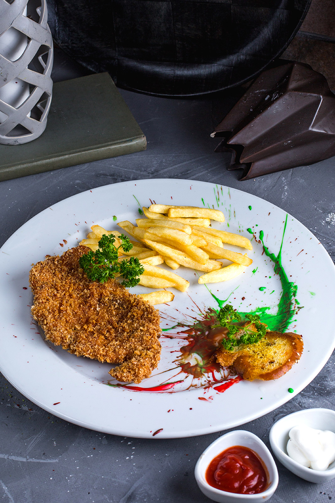 Tek başına oldukça doyurucu olan bu lezzeti doğru garnitürle bir ziyafet menüsü haline getirebilirsiniz. Avrupa’nın lüks restoranlarında tattığınız klasik tavuk şinitzelin eşlikçisi her zaman patates salatasıdır. Klasik, yeşillikli bir patates salatası yapabilir ve tavuk şinitzel yanına ekleyebilirsiniz. Eğer daha farklı bir salata isterseniz, Alman mutfağının gözde lezzetlerinden hardallı patates salatalarından yararlanabilirsiniz. Garnitürü etin yanına koyabileceğiniz gibi, küçük servis ürünleri içinde de masaya getirebilirsiniz.