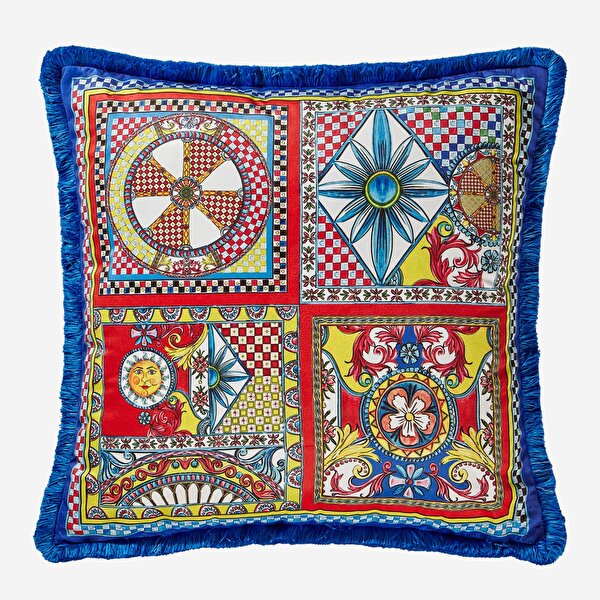 Kırmızı Mavi Kadife Dekoratif Yastık 60X60 Cm