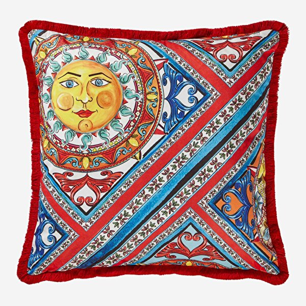 Kırmızı Mavi Kadife Dekoratif Yastık 60X60 Cm