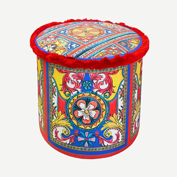 Kırmızı Mavi Kadife Puf 45X45 Cm