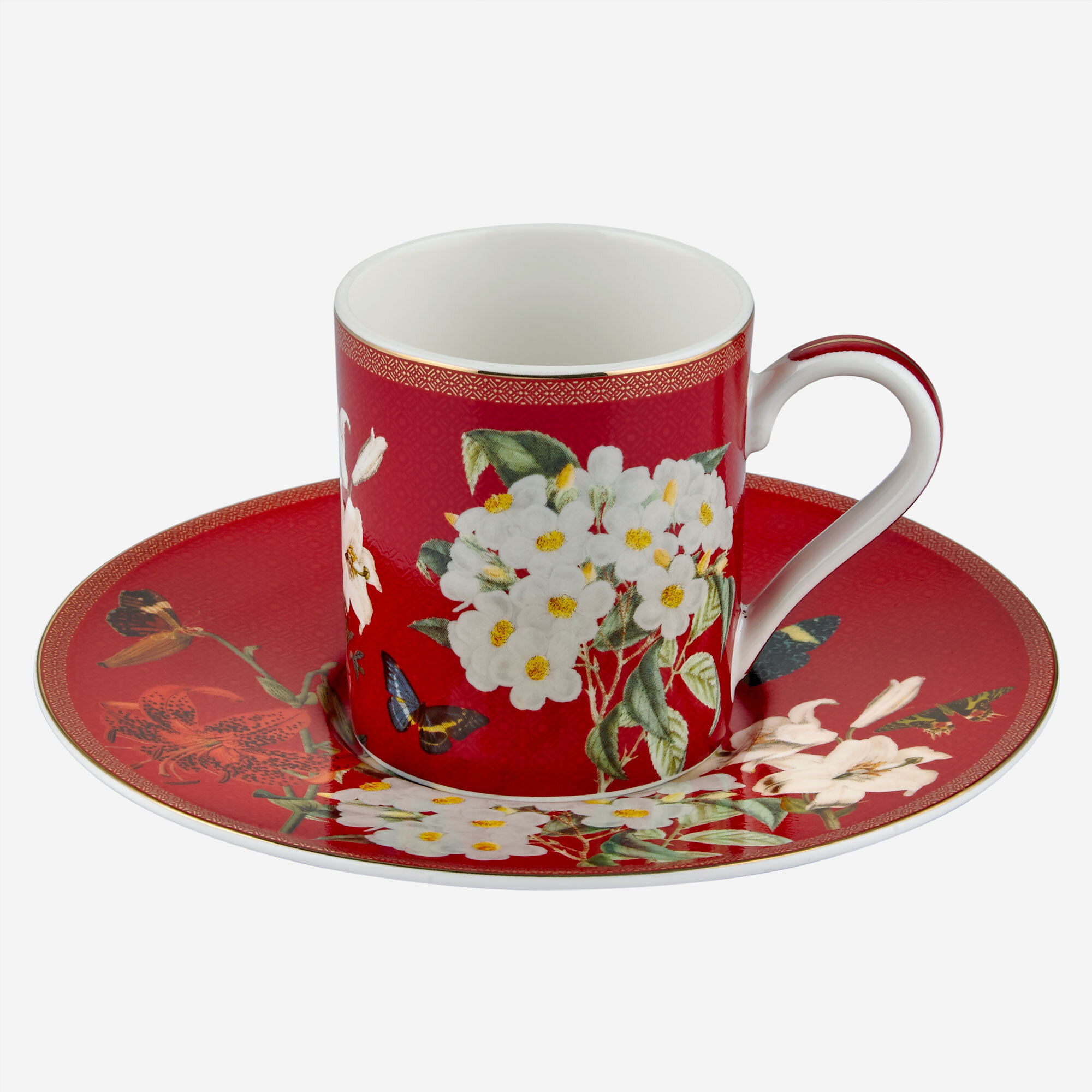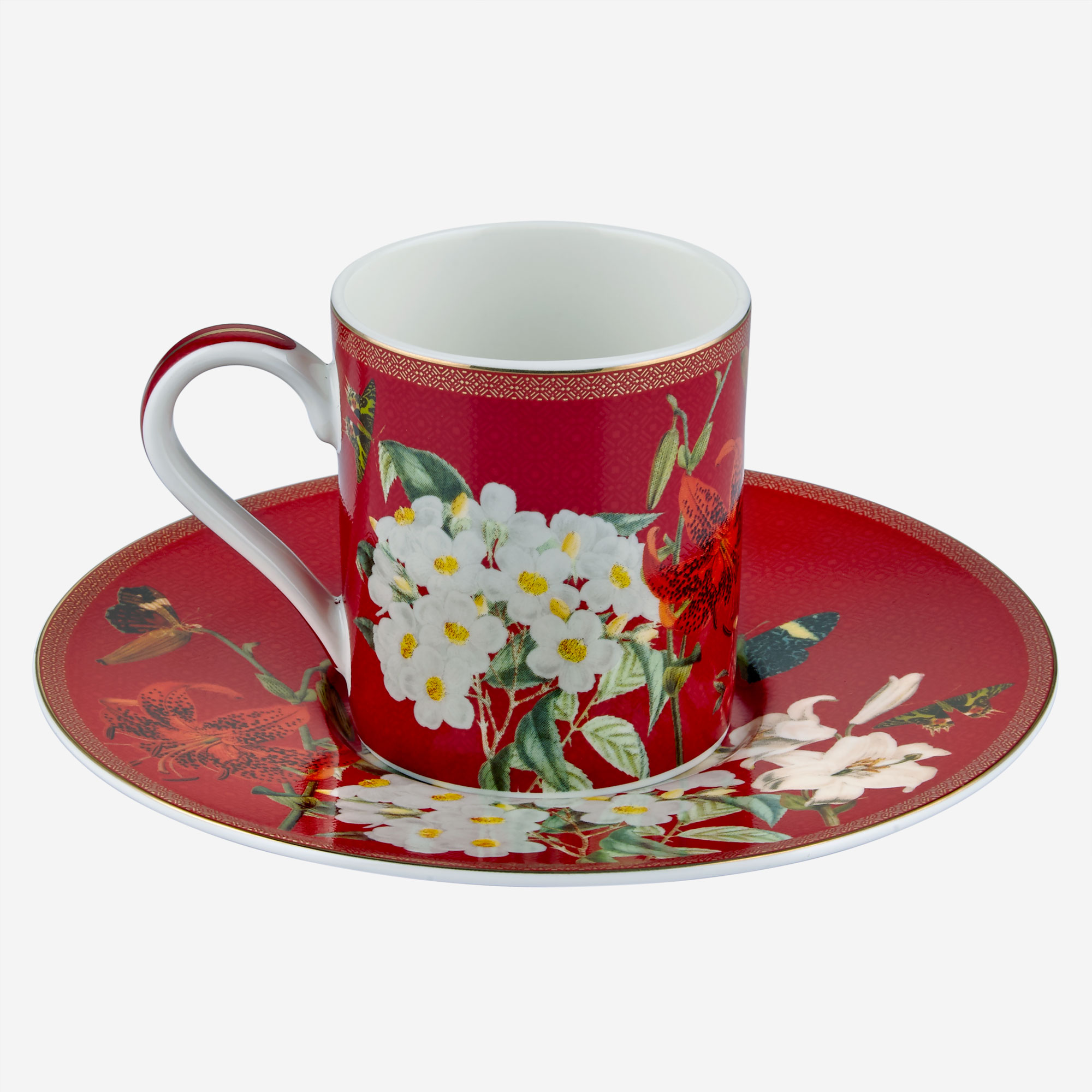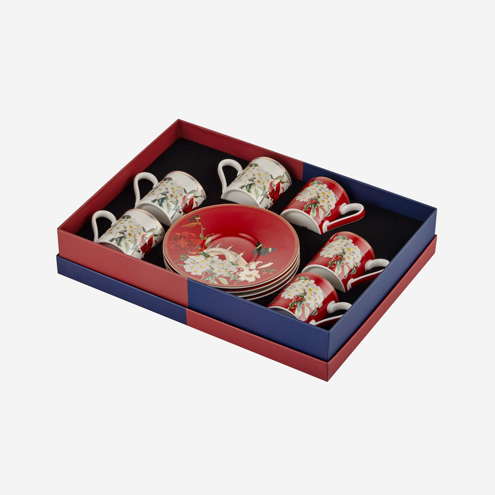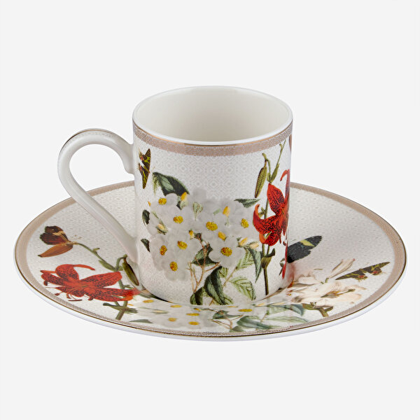 Kırmızı Beyaz Porselen Kahve Fincan Seti 90 Ml