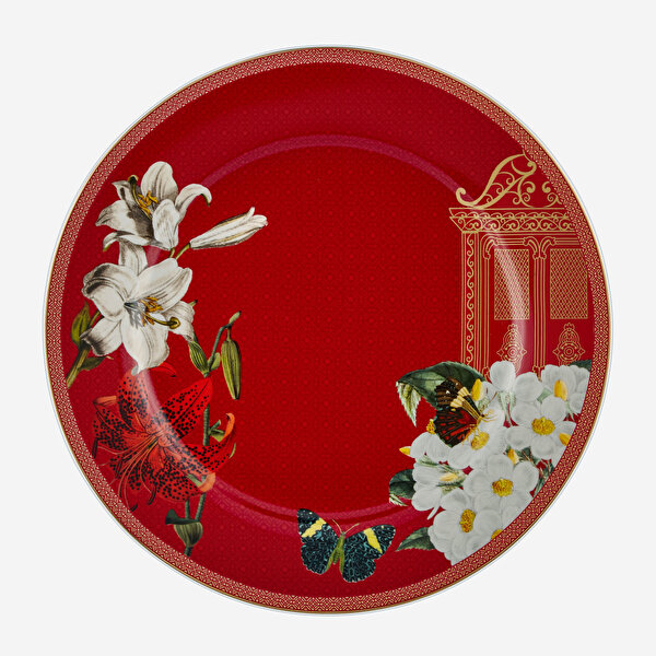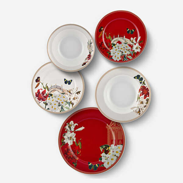Kırmızı Beyaz Porselen Yemek Takımı 24 Parça