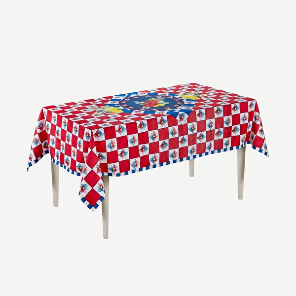 Kırmızı Mavi Polyester Masa Örtüsü 150X230 Cm