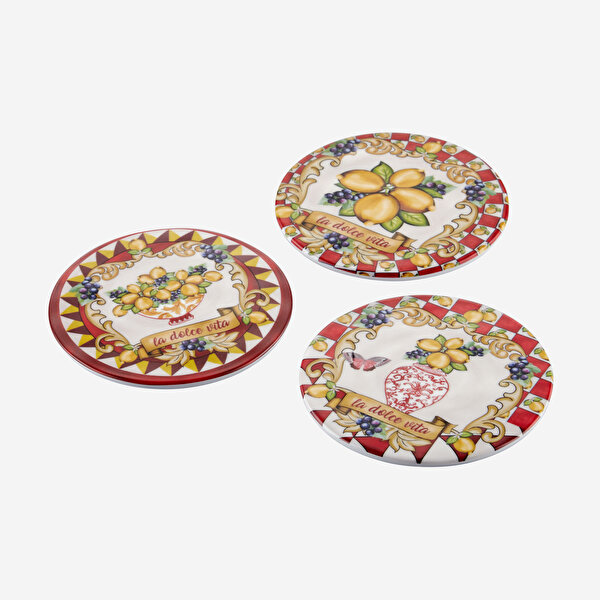 Kırmızı Melamin Bardak Altlığı 3 Parça