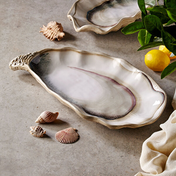 Bej Seramik Servis Tabağı 47X25 Cm