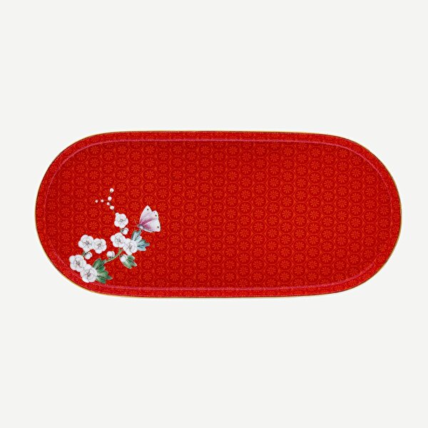 Kırmızı Porselen Servis Tabağı 25 Cm