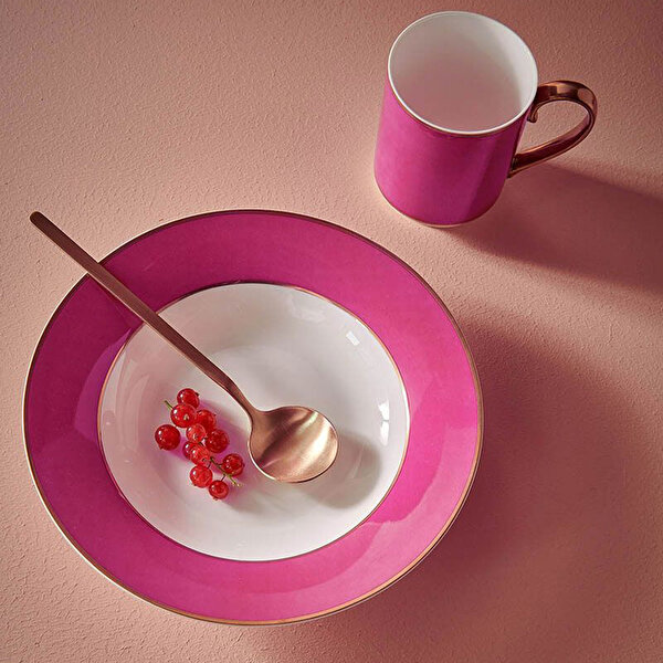 Pembe Porselen Çukur Tabak 23,5 Cm