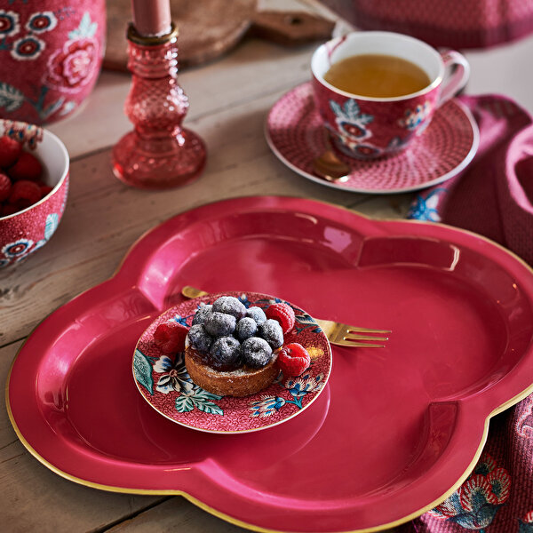 Kırmızı Porselen Petit Four Tabağı 12 Cm