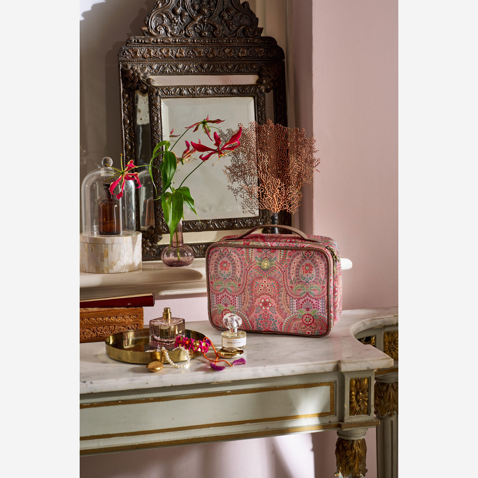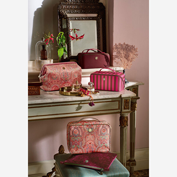 Kırmızı Kadife Makyaj Çantası 27X10x19 Cm
