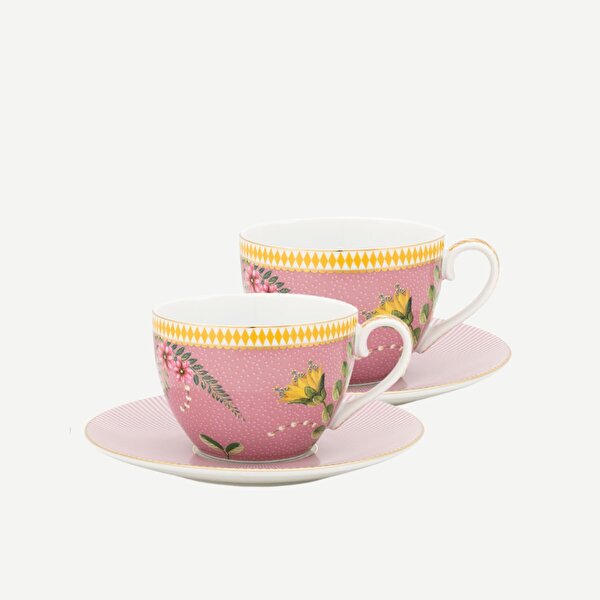 Pembe Porselen Çay Fincan Seti 280 Ml