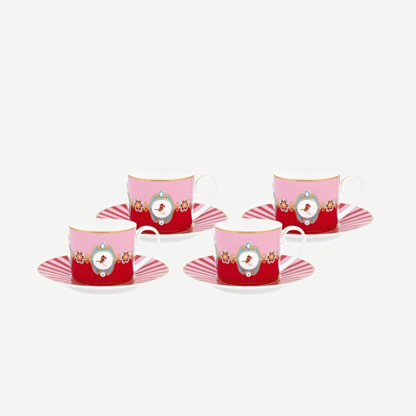 Kırmızı Pembe Porselen Çay Fincan Seti 200 Ml