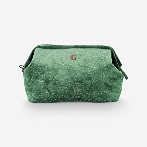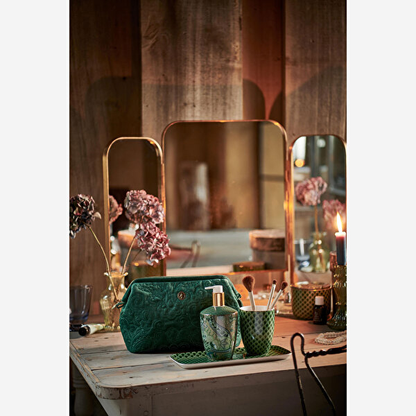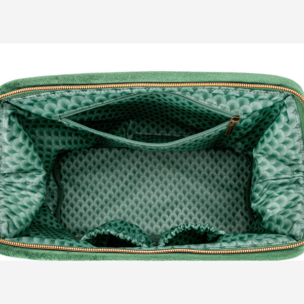 Yeşil Kadife Makyaj Çantası 30X13,8x20,7 Cm