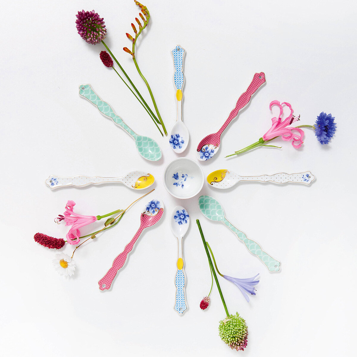 Mavi Pembe Porselen Çay Kaşığı Seti 4 Parça