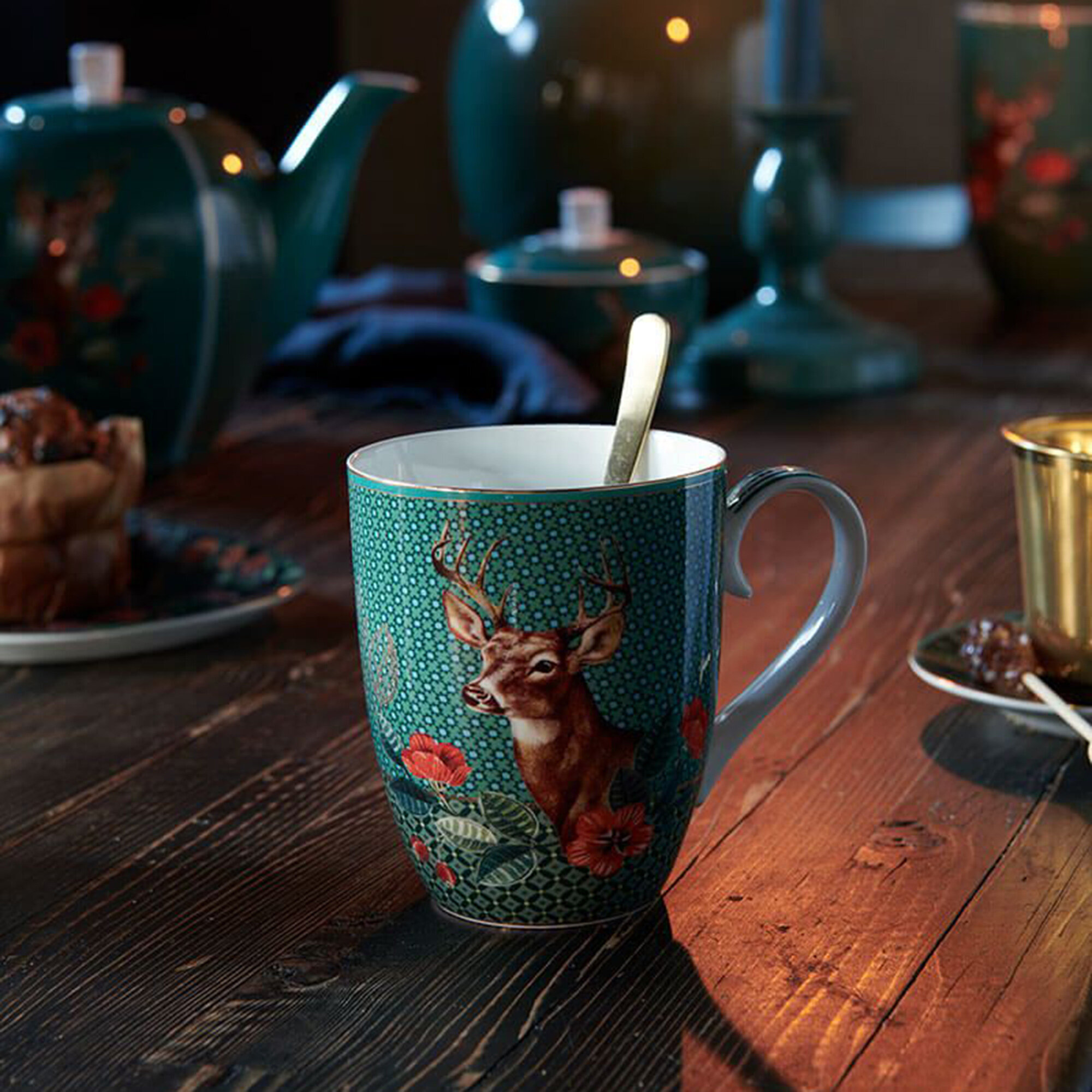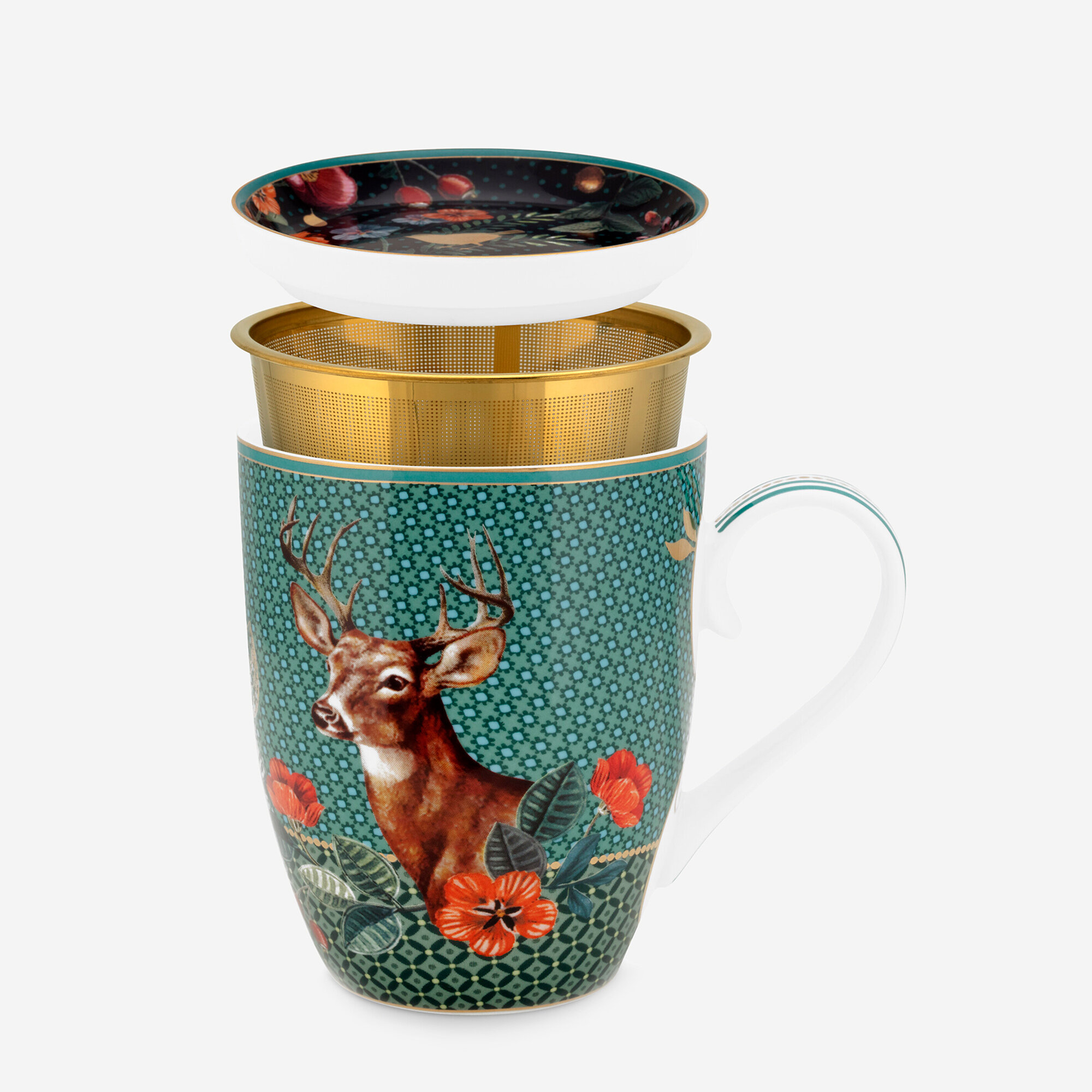 Yeşil Porselen Süzgeçli Kupa 350 Ml